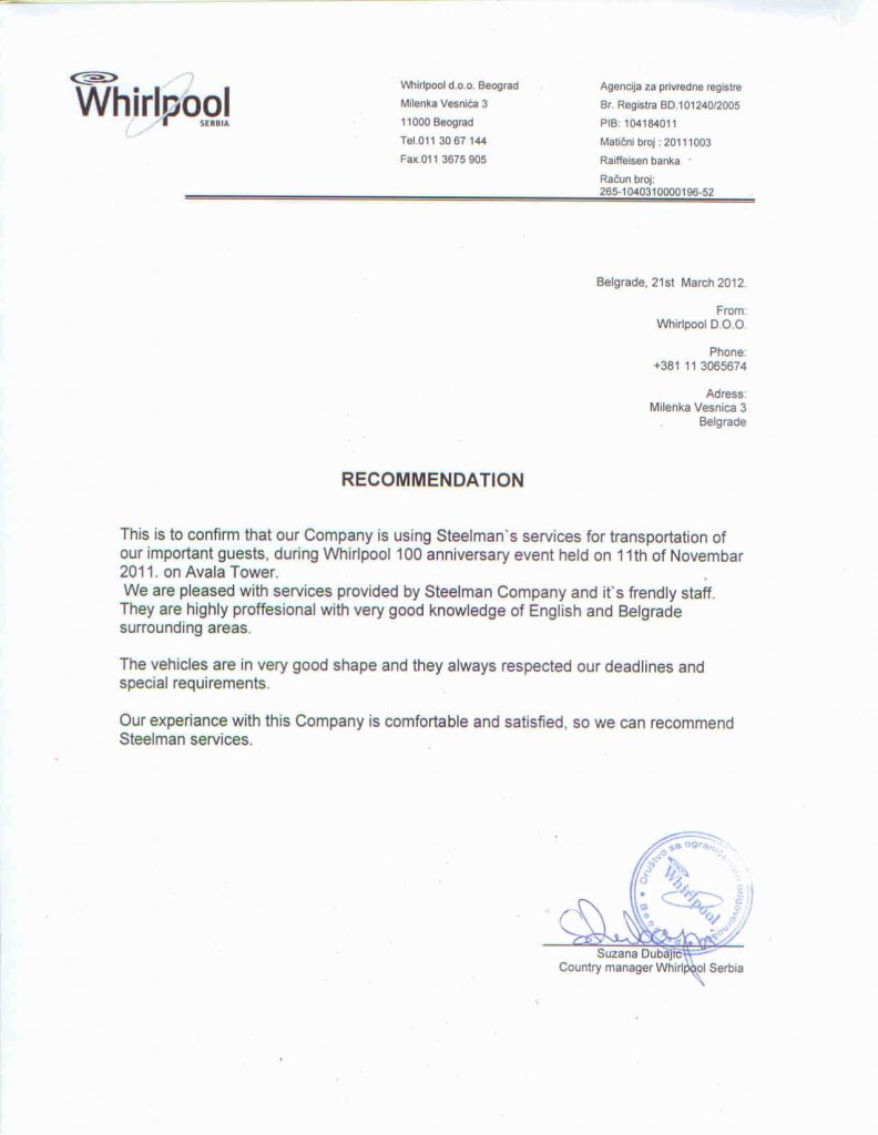 No matter what you are looking for, whether regular limousine service, transfers, shopping sightseeing or business roadshows Steelman chauffeurs service caters to businesses and individuals that demand efficient and safe car service. Steelman Chauffeur Service provide corporate chauffeur services and airport transfers within Serbia for business and private clients.